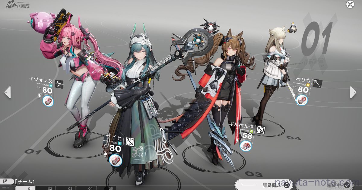 編成はイヴォンヌ、ザイヒ、ギルベルタ、ペリカになりました!
